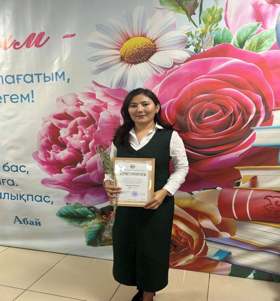 Бастауыш сынып мұғалімі Жанарбек Жаннұр Ақмола облысы білім басқармасының Құрмет грамотасымен марапатталды.